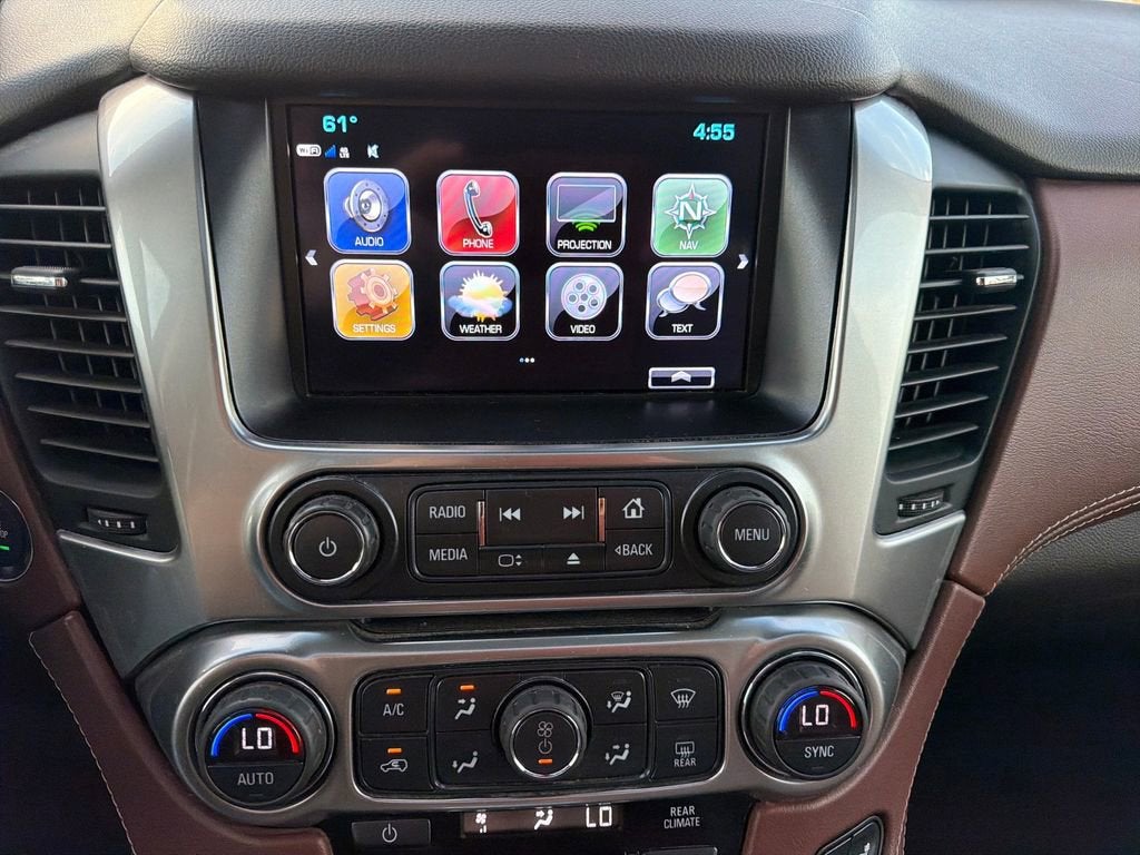 **ONE OWNER**, **LOCAL TRADE**, **LEATHER**, **SUNROOF**, **Bluetooth® HANDS FREE CALLING**, **MP3 / IPOD COMPATIBLE**, **REAR VIEW CAMERA**, **PREMIUM STEREO**, **SOLD NEW HERE**, *CHROME WHEELS**, **XM RADIO**, **ONSTAR**, **3RD ROW SEATING**, **SECOND ROW CAPTAINS CHAIRS**, **TOWING PACKAGE**, **RUNNING BOARDS**, **HEATED/COOLED SEATS**, Cocoa/Mahogany Leather, 3.42 Rear Axle Ratio, Apple CarPlay/Android Auto, Auto High-beam Headlights, Automatic Emergency Braking, Bose Centerpoint Premium 10-Speaker Surround Sound, CD player, Delay-off headlights, Enhanced Driver Alert Package (Y86), Exterior Parking Camera Rear, Fog Lamps, Forward Collision Alert, Front & Rear Park Assist, Front Passenger 6-Way Power Seat Adjuster, Fully automatic headlights, Garage door transmitter, Hands Free Power Liftgate, Head-Up Display, High-Intensity Discharge Headlights, Integrated Trailer Brake Controller, IntelliBeam Headlamps, Lane Change Alert w/Side Blind Zone Alert, Lane Keep Assist w/Lane Departure Warning, Leather steering wheel, Max Trailering Package, Memory seat, Memory Settings, Pedal memory, Power Release 2nd Row Bucket Seats, Power Sunroof, Power-Adjustable Accelerator & Brake Pedals, Rain sensing wipers, Rear Cross Traffic Alert, Rear Seat Blu-Ray/DVD Entertainment System, Remote keyless entry, Remote Vehicle Start, Steering wheel memory, Steering wheel mounted audio controls, Sun, Entertainment & Destinations Package, Telescoping steering wheel, Universal Home Remote, Wheels: 22 Premium Painted w/Chrome Inserts.