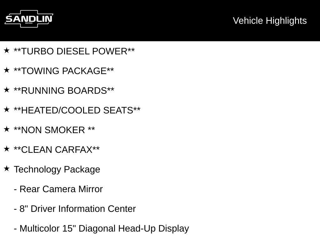 **ONE OWNER**, **LEATHER**, **NAVIGATION**, **SUNROOF**, **Bluetooth® HANDS FREE CALLING**, **MP3 / IPOD COMPATIBLE**, **REAR VIEW CAMERA**, **PREMIUM STEREO**, **XM RADIO**, **ONSTAR**, **TURBO DIESEL POWER**, **TOWING PACKAGE**, **RUNNING BOARDS**, **HEATED/COOLED SEATS**, **NON SMOKER **, **CLEAN CARFAX**, 10-Speed Automatic, 4WD, Jet Black With Kalahari Accents Leather, 10-Way Power Driver Seat Adjuster w/Lumbar, 10-Way Power Passenger Seat Adjuster w/Lumbar, 4G LTE Wi-Fi Hotspot Capable, 8 Driver Information Center, Adaptive Cruise Control, Apple CarPlay/Android Auto, AT4 Preferred Package, AT4 Value Package, Auto-Locking Rear Differential, Automatic Emergency Braking, Bed View Camera, Delay-off headlights, Driver Alert Package I, Driver Alert Package II, Driver Memory, Following Distance Indicator, Forward Collision Alert, Front Bucket Seats, Front dual zone A/C, Front fog lights, Front Pedestrian Braking, Fully automatic headlights, HD Surround Vision w/2 Trailer View Camera Provisions, Heated 2nd Row Outboard Seats, Heated steering wheel, Hill Descent Control, Hitch Guidance w/Hitch View, In-Vehicle Trailering App, Integrated Trailer Brake Controller, IntelliBeam Automatic High Beam On/Off, Lane Change Alert w/Side Blind Zone Alert, Lane Keep Assist w/Lane Departure Warning, Memory seat, Multicolor 15 Diagonal Head-Up Display, Perimeter Lighting, Power Sliding Rear Window w/Rear Defogger, Premium Bose 7-Speaker Sound System, Radio: Premium GMC Infotainment Sys w/Navigation, Rear Camera Mirror, Rear Cross Traffic Alert, Rear Wheelhouse Liners, Red Recovery Hooks, Remote keyless entry, Remote Vehicle Starter System, Safety Alert Seat, SiriusXM w/360L, Spray-On Pickup Bed Liner w/AT4 Logo, Steering wheel mounted audio controls, Technology Package, Ultrasonic Front & Rear Park Assist, Universal Home Remote, Wheels: 20 x 9 Machined Aluminum, Wireless Charging.